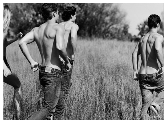Bernstein confirmed that one depicts three shirtless young men from the back, walking through a field. The man in the lead appears to be about to pull up his jeans, which have slipped down enough to reveal his upper buttocks.